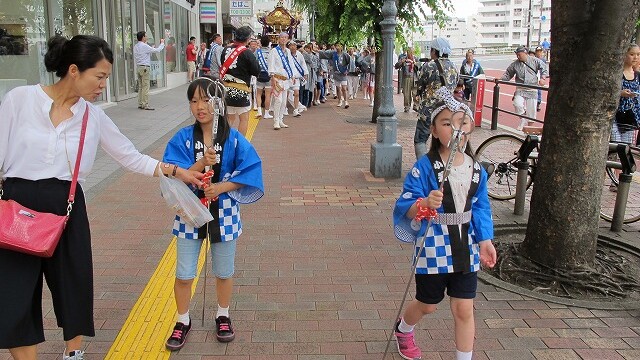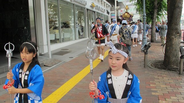 小学生以上は神輿を担ぎ、ちいさい子供達は親御さんと一緒に山車を引いて