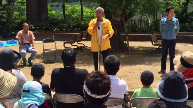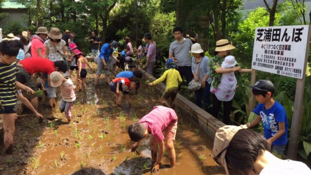 ・冒頭、芝浦海岸町会商店会会長を務める中島町会長より、挨拶を行い、「昨年より田んぼはこの芝浦公園に移りましたが、田んぼの土が育つには10年かかるといいます。子供たちが育つのにも多くの時間がかかります。まわりの大人たちがその成長を見守ってあげ