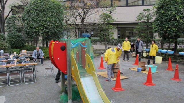 ・みなとパーク芝浦内に防災資材置き場を確保していただきました。加えて、100mを超える消防訓練スペースも使えるようになりました。