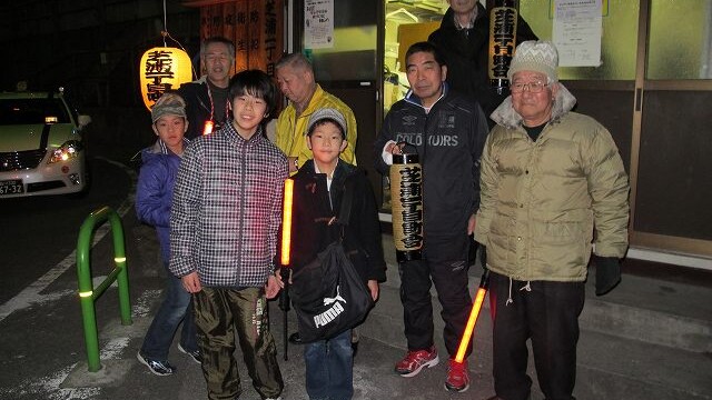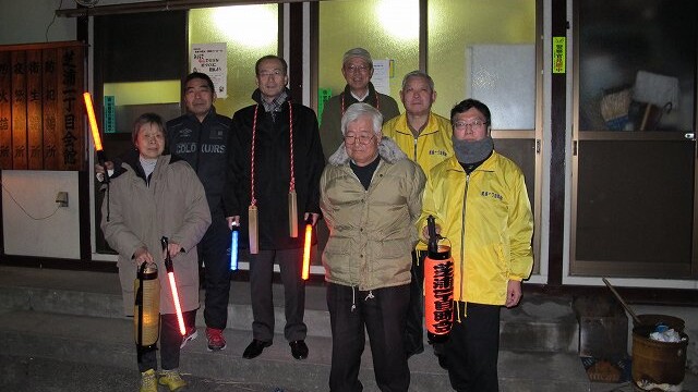 1時間ほどで夜回りは終了します。その後、ささやかですが地域防災・防犯結束の懇親会を行いますので、併せてご参加いただければ幸いです。何もご準備いただくものはありません。手ぶらでご参加下さい。